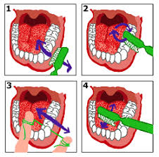 Antes de la erupción dentaria, limpiar los rodetes maxilares con una gasa o tela suave y limpia enrollada en el dedo índice. Esta práctica puede continuar hasta la aparición de los primeros cuatro dientes. Luego puede hacerse con dediles de látex o pequeños cepillos para niños.